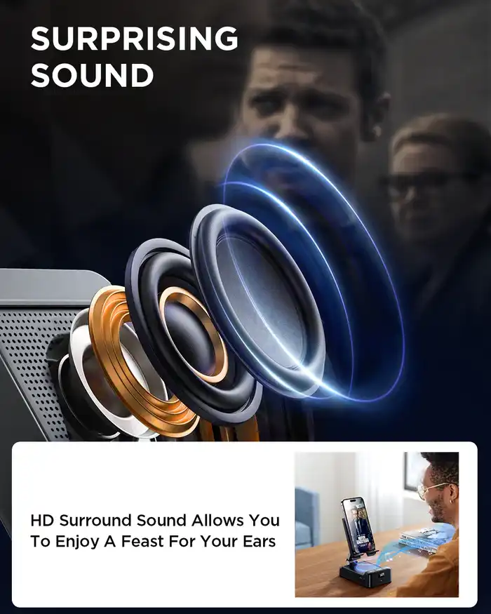 - Innovative design, 3-in-1 multifunctional wireless speaker with phone holder, works as a speaker, phone stand, charging station