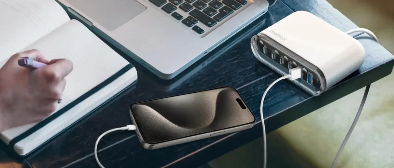 MOMAX 1-Charge Flow+ 120W USB-C and USB-A 6-Port GaN Desktop Charger (UM55)