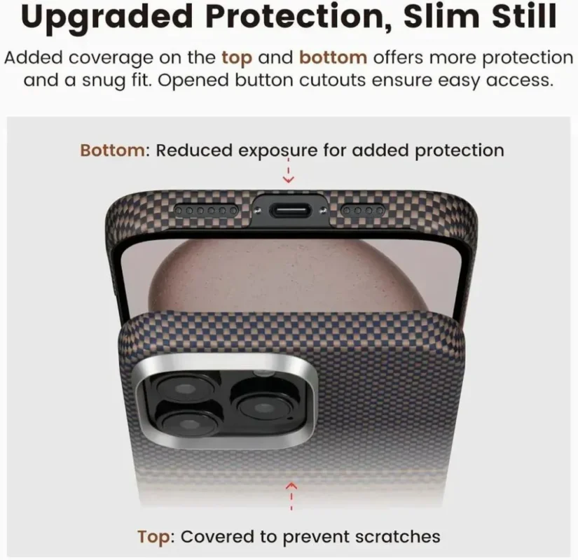• Sleek and Secure: Enjoy the ultra-thin, sleek design, now with upgraded protection for peace of mind.The raised camera lip offers added protection for your lens, keeping it safe from scratches. Enhance your iPhone 16 Pro / 16 Pro Max with the Pitaka Tactile Woven Ultra Slim Case.