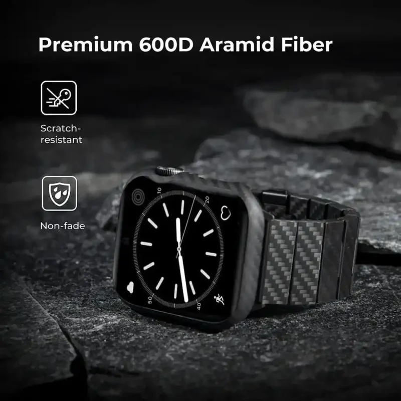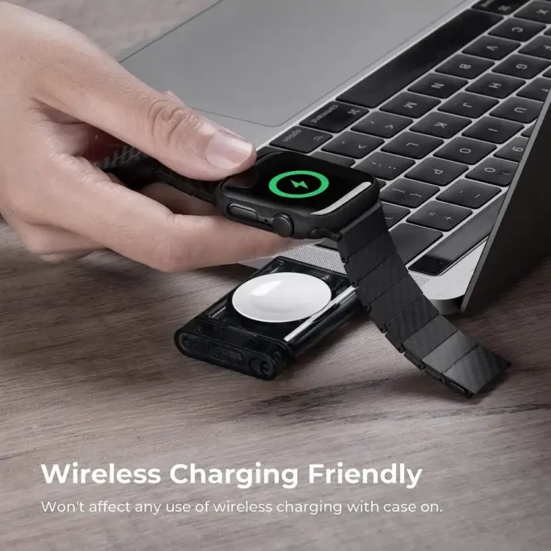 - 600D Aramid Fibre for Constant Protection : This apple watch case is crafted from 100% Aramid Fiber, a material used in Armor, and Spacecraft. The tough material effectively offers protection for your watch against scratches, drops, and bumps. No interference in the signal, wireless charging and waterresistant function.