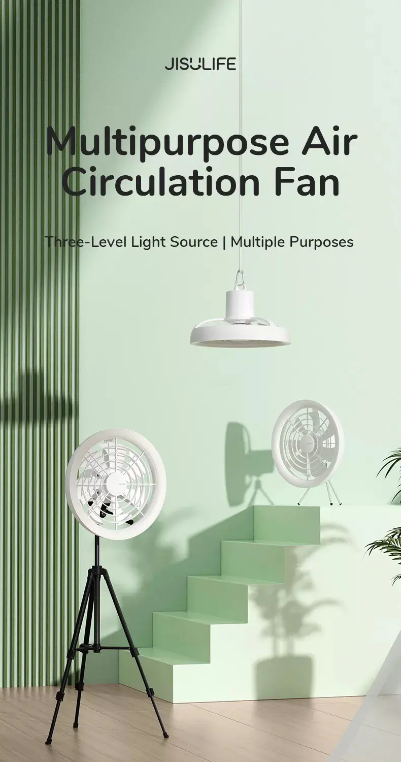 JISULIFE FA17 Outdoor Camping Ceiling Fan LED Light with Small Stand