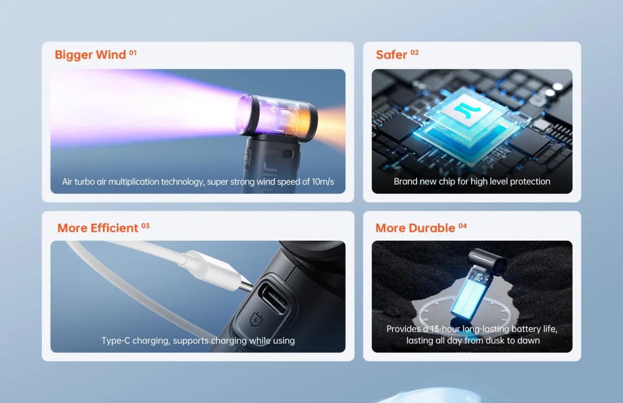 - In conclusion, the JisuLife Handheld Fan offers unparalleled cooling performance, long-lasting battery life, and portability in a sleek and stylish design. Elevate your cooling experience with this must-have gadget accessory.