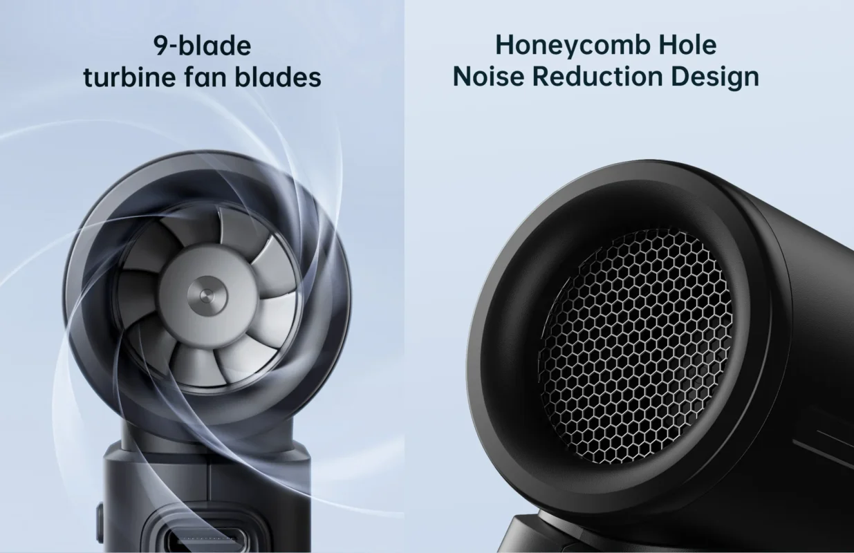 - Experience the ultimate cooling comfort with the JisuLife Handheld Fan Life9. This innovative handheld turbo fan features an advanced 9-blade design paired with a high-speed three-phase brushless motor, delivering a maximum wind speed of up to 10m/s. With a maximum RPM of 40000, this fan offers four times the power of ordinary handheld fans.