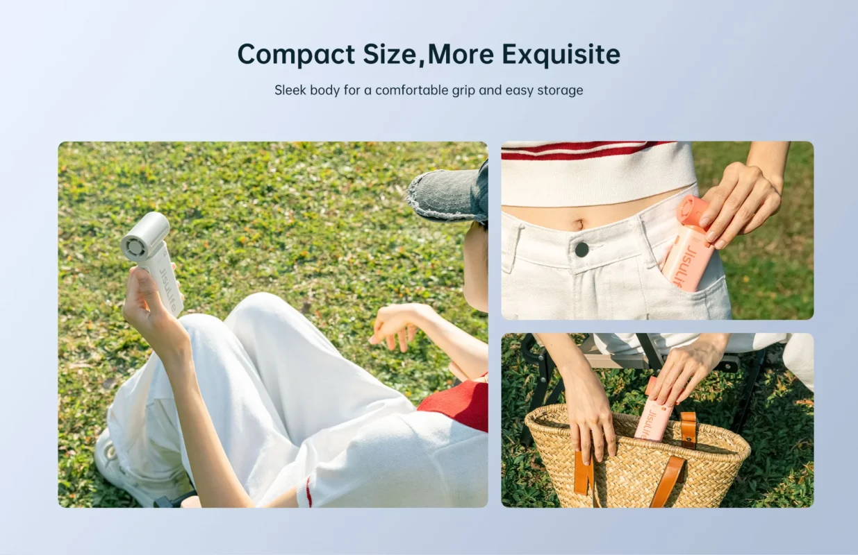 - Perfect for any occasion, the JisuLife Handheld Fan is suitable for both men and women of all ages. Whether you’re working, studying, or traveling, this mini portable fan will be your trusted companion. It’s also an ideal gift choice for your loved ones, combining functionality with exquisite aesthetics.