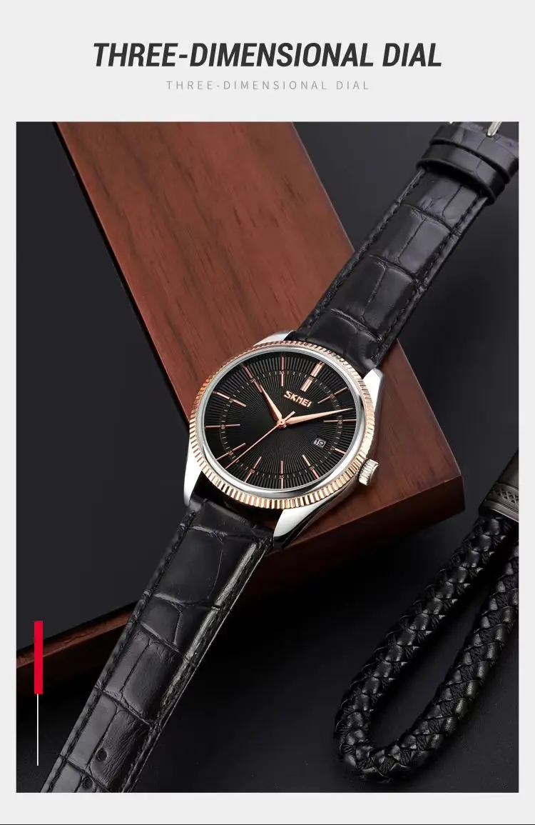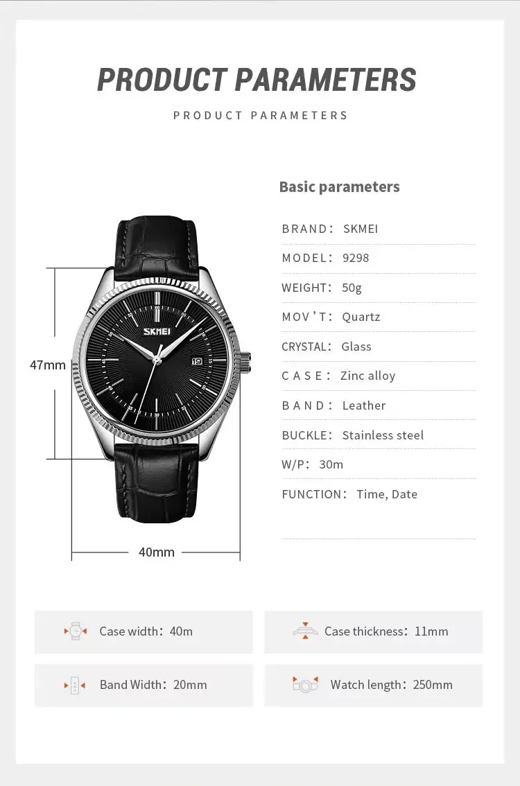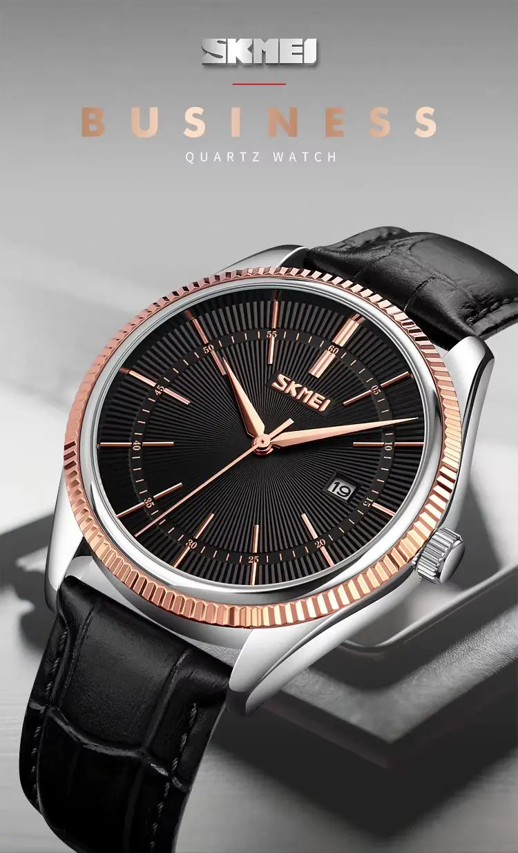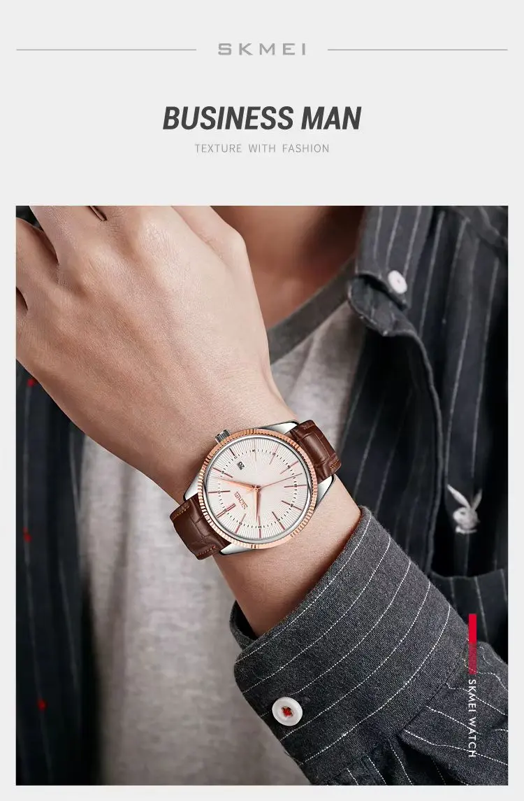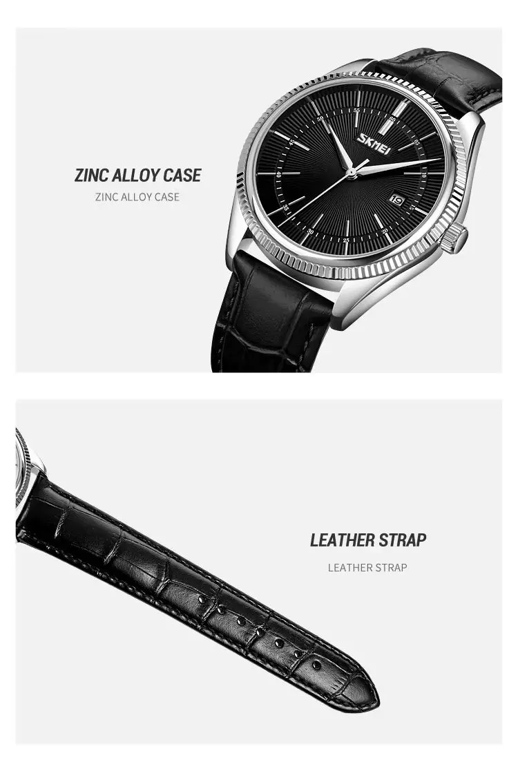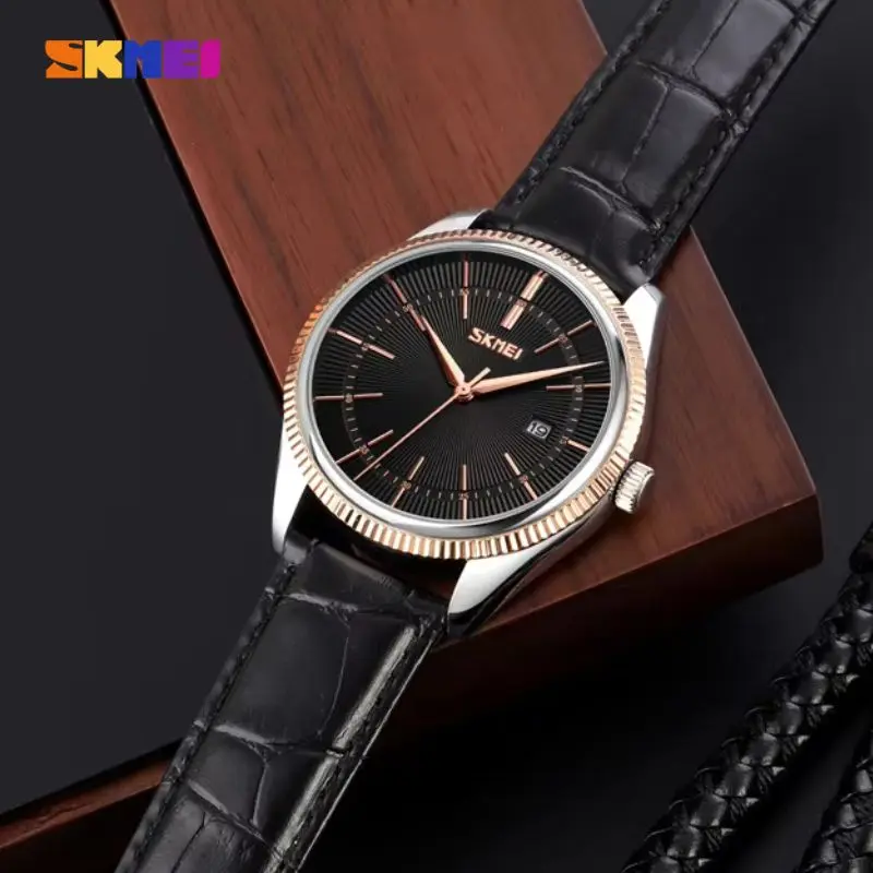 SKMEI 9298 Quartz Waterproof Leather Strap Watch